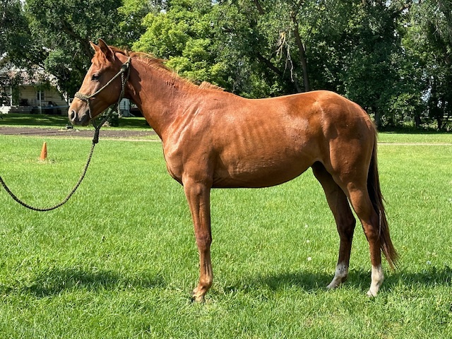 This one is a little different around our place… but if you are looking for a Warmblood cross for a jumping prospect, she could be the one for you!